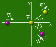 Hay muchas páginas en la web con simulaciones de choques en dos dimensiones. Una de las más sencillas es la la de B. Surendranath, en la que puedes modificar la separación entre los centros de las bolas que chocan, su relación de masas, la velocidad de impacto, etc.