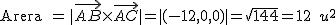 Calcula el área del triángulo de vértices A = (1, 1, 2), B = (1, 0, −1) y C = (1, –3, 2)