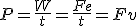 - W es el trabajo, que es igual a fuerza por desplazamiento.
