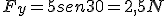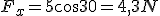 Sobre un cuerpo apoyado en una mesa actúa una fuerza de 5 N que forma un ángulo de 30º sobre la horizontal.