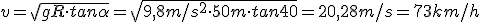 Una moto se inclina 30º al tomar una curva de 80 m de radio. ¿A qué velocidad la podrá tomar como máximo por efecto de la inclinación?