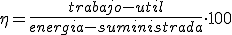 Se denomina rendimiento (η) de una máquina al cociente entre el trabajo útil que proporciona y la energía que se le ha suministrado. Este rendimiento suele expresarse en tanto por ciento: