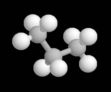 El compuesto más sencillo es el metano, cuya estructura puedes ver en la imagen. Si se sustituye un hidrógeno por otro carbono, y se completan con hidrógenos los enlaces del nuevo carbono, la molécula formada es CH3-CH3. Si uno de los hidrógenos se vuelve a sustituir por otro carbono y completar con hidrógenos, se forma propano, CH3-CH2-CH3.