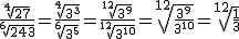 Se puede usar la última propiedad para sustituir dos raíces de distinto índice por otras dos con el mismo índice que entonces podrán multiplicarse y dividirse.