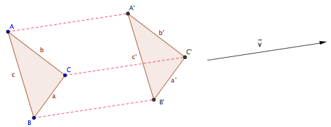 Si observamos el triángulo ABC de la figura y trasladamos todos sus puntos como se traslada su vértice A, entonces todas los segmentos que unen un punto de la figura con su homólogo de la figura trasladada, (por ejemplo B con B' o C con C') no sólo tiene la misma longitud, sino que además son paralelos entre si y además la orientación de las semirectas [A,A'), [B,B') y [CC') es la misma.