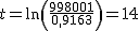 Tomando logaritmos neperianos: