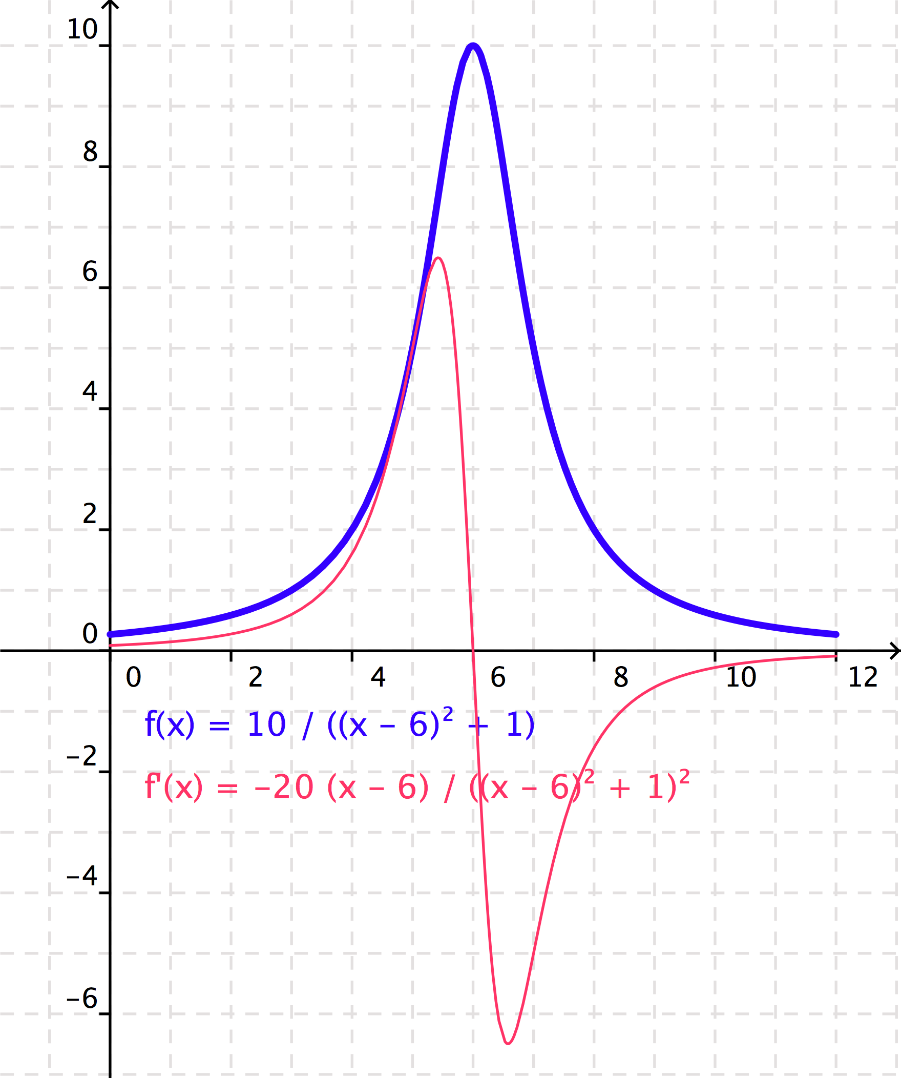 Mueve el punto P y observa el valor de la pendiente de la tangente y el valor que toma la función derivada f' en cada punto.