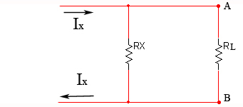 | Un circuito que tenga dos terminales, se comporta respecto de una resistencia de carga colocada entre ellos como un simple generador de intensidad Ix en paralelo con una resistencia Rx. |