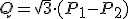 Si en vez de sumar las potencias de los vatímetros P1 y P2 las restamos, y razonamos de forma similar a como lo hemos hecho obtenemos: