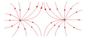 Puedes visualizar las líneas de campo de un sistema formado por dos cargas puntuales iguales, en la siguiente animación: