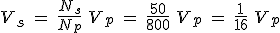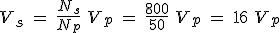 Como el flujo que atraviesa cada espira es el mismo en las dos bobinas, la fem inducida en la bobina del secundario, y por tanto la tensión (voltaje) Vs en los bornes del secundario, será: