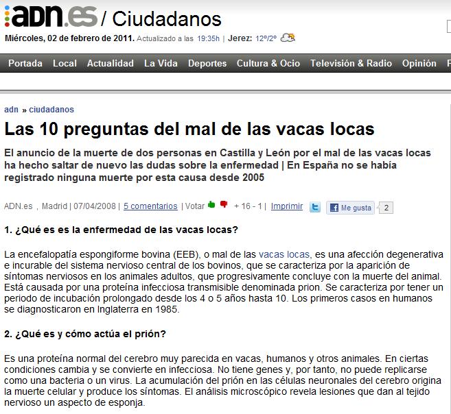 Su origen es un prión, es una estructura no celular de la que también hablaremos en este Tema. Para ir informándote, pincha sobre la imagen, lee la noticia y contesta las preguntas relacionadas con él.