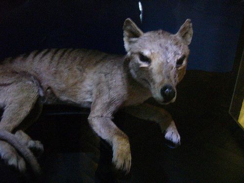 The island of Tasmania was home to the Thylacine, a marsupial which resembled a wild dog. Known colloquially as the Tasmanian Tiger for the distinctive striping across its back, it became extinct in mainland Australia much earlier because of competition by the dingo, introduced in prehistoric times. Owing to persecution by farmers, government-funded bounty hunters and, in the final years, collectors for overseas museums, it appears to have been exterminated in Tasmania.