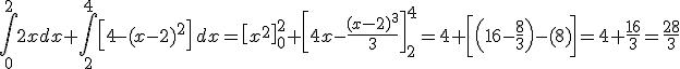 Gracias a un programa, determina que las curvas que generan la ventana son las rectas y = 2x e y = 4-(x-2)2. ¿Cuál será el área de la ventana indicada?