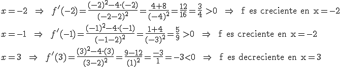 Estudia si las siguientes funciones son crecientes o decrecientes en los puntos que se indican: