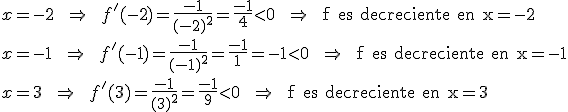 Si f'(a)<0 entonces f(x) es decreciente en a.