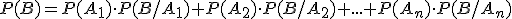 Dado un experimento aleatorio E y un conjunto de sucesos A1, A2, ....,An asociados a E tal que la probabilidad de cada uno de ellos es distinta de cero, son incompatibles dos a dos y A1 ∪ A2 ∪.... ∪ An = E (Suceso cierto) y sea B un suceso cualquiera para el que se conocen las probabilidades de B/Ai. Entonces la probabilidad del suceso B viene dada por la siguiente expresión :