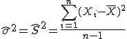 Eso le ocurre a los estadísticos anteriores. Pero tenemos un problema con la varianza y es que la varianza muestral no coincide con el valor de σ. Por ello el estadístico insesgado de σ2 es: