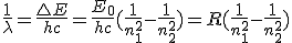 Cuando un electrón pasa de una órbita en la que tiene más energía (n2) hasta otra de menor energía (n1, más interna), emite una radiación correspondiente a esa diferencia energética E = E2 - E1. Teniendo en cuenta la ecuación de Planck,