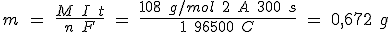 Es decir, para depositar un mol de X se necesitan n faradays (96500 C). Como la proporción de reacción es constante, si circula una intensidad de corriente I durante un tiempo t, la carga eléctrica Q será Q = I t y depositará una masa m del metal de masa molar M. En consecuencia: