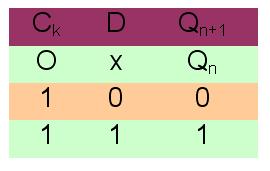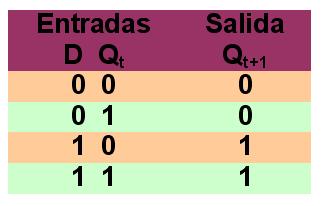 El nuevo estado Qt+1 es 0, si D está inactiva 0 en el instante de sincronismo