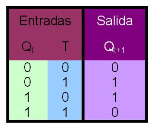 Cuando la entrada T toma el valor 1, la salida cambia de estado (bascula, de ahí su nombre).