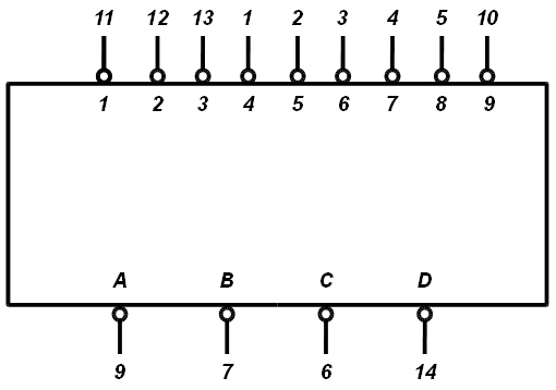 Por tanto emplearemos 4 salidas. Como con 4 salidas (4 bits) tenemos 16 combinaciones y empleamos 10 (del 0 al 9), o bien dejaremos seis combinaciones sin emplear, o las utilizaremos para codificar cualquier otra función representada en alguna de las teclas de la calculadora (el +, el -, el ·, el ÷, el = y la √; por ejemplo)