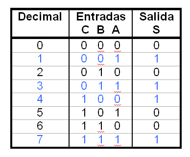 Ejemplo. A partir de la tabla de la verdad siguiente:
