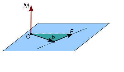 Donde b es el vector que va desde el punto de apoyo O, que será el centro del momento, o el eje de giro, hasta la línea de acción de la fuerza F, perpendicularmente.