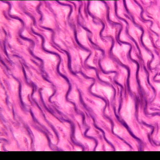 - Tejido conjuntivo elástico. Es un tejido en el que las fibras elásticas dominan, ordenándose de forma paralela unas a otras.