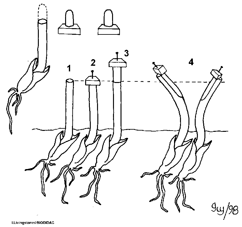 - El fenómeno de dominancia apical por el que el crecimiento se realiza de forma predominante a partir de la yema apical.
