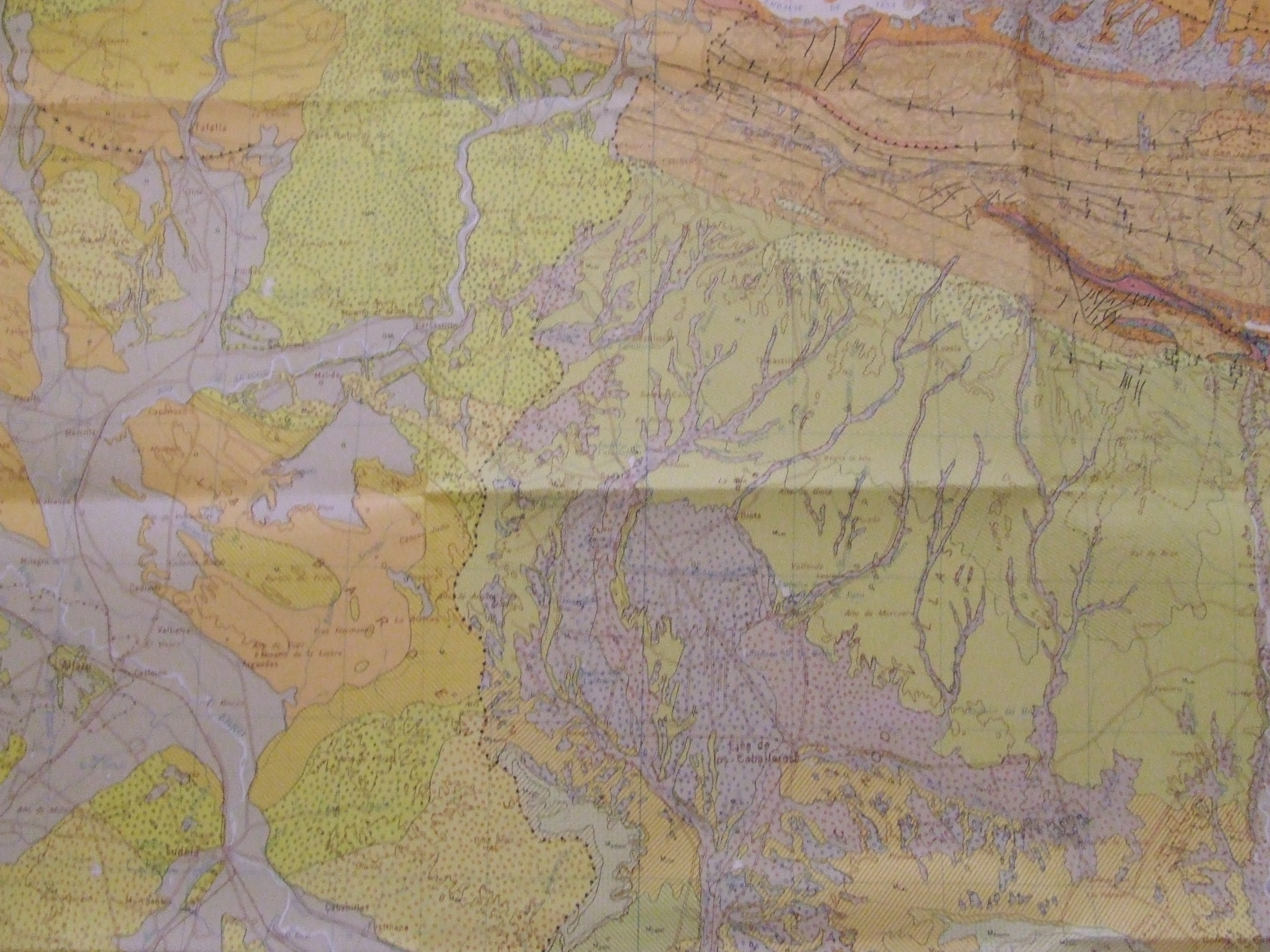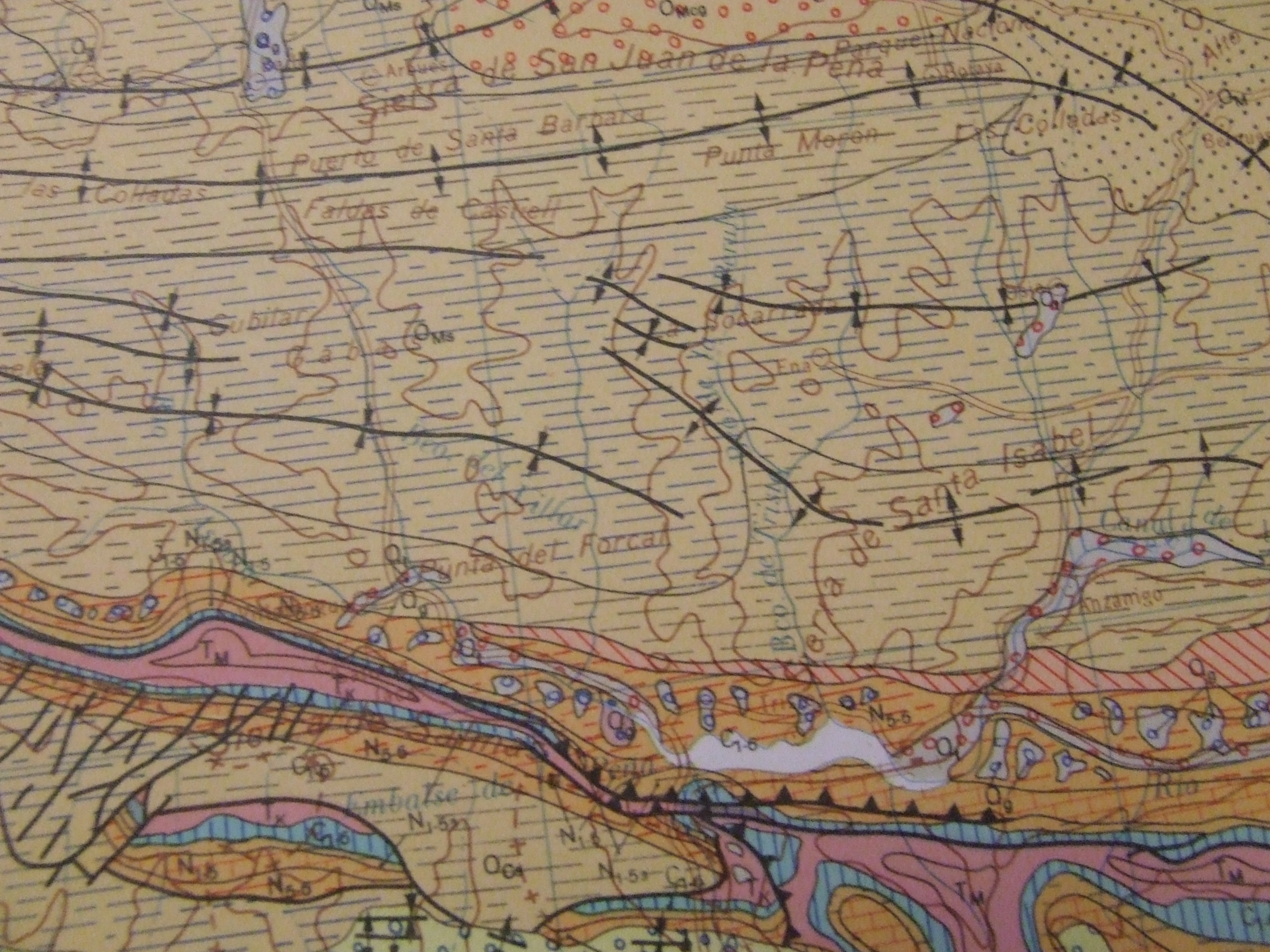 Sigo hablando con el topógrafo. Es un hombre agradable y de fácil conversación. Me indica que la obra en esta zona va a ser bastante fácil y rápida por las características del terreno. Para informarme un poco más del tema y para apoyar sus explicaciones me enseña un mapa extraño para mí. No lo había visto en mi vida. Me explica que es un mapa geológico de la zona y que proporciona información sobre los tipos de rocas presentes en la zona y las estructuras geomorfológicas que hay.